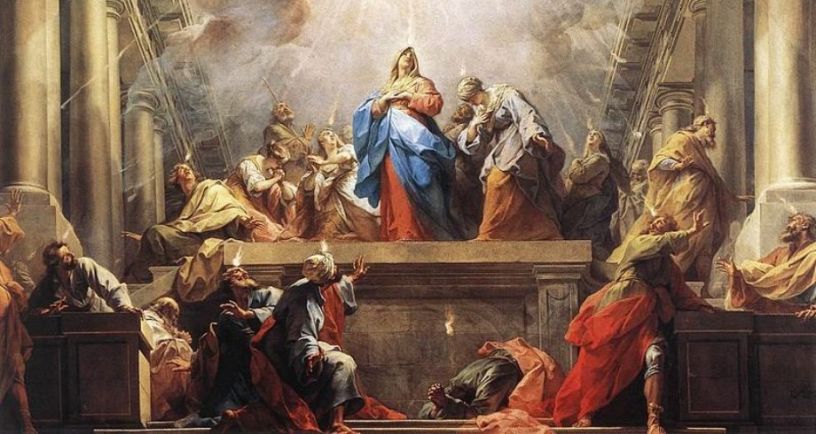“When the time for Pentecost was fulfilled, they were all in one place together. And suddenly there came from the sky a noise like a strong driving wind, and it filled the entire house in which they were. Then there appeared to them tongues as of fire, which parted and came to rest on each one of them. And they were all filled with the holy Spirit and began to speak in different tongues, as the Spirit enabled them to proclaim.” Acts 2: 1-4