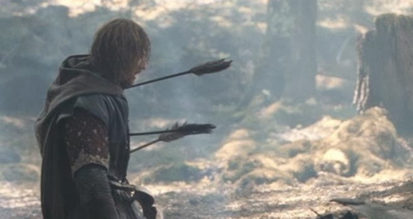 Boromir is struggling for the breath of life now; it burns his throat, thick with saliva and blood. Each gasp brings fresh pain, as a purple river trickles from his gaping wounds. But he must get out the words…must get out…words…