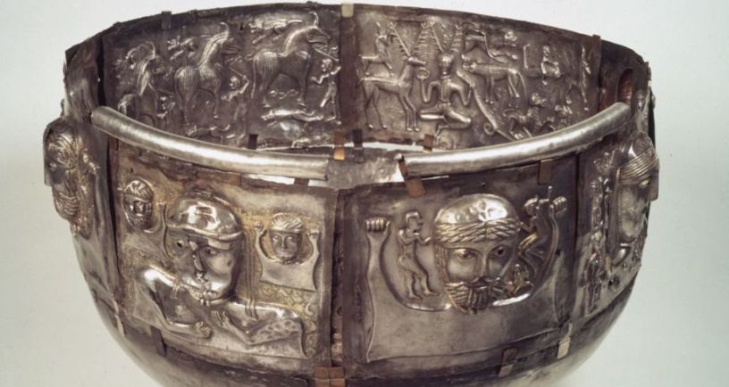 The cauldron was forged at the beginning of time in Annwn’s depths by a giant called Llasar Llaes Gyfnewid ‘Blue Smith who Reforges the Weak’. Painstakingly he enamelled its ridge and gilded it with pearls.