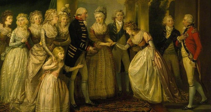 When Princess Charlotte was brought to England from her home in one of the German principalities to marry King George III, she was petrified. Aged 16, she would not only be meeting her future husband on the same day she would marry him, but she would also be assuming the role as Queen of England. To make matters more uncomfortable, the princess could barely speak a word of English, and she was tasked to sing the national anthem “God Save the King.” But when she was first presented to George in the garden, and proceeded to curtsy deeply in recognition of his rank, he enthusiastically pulled her up to his level and embraced her. He then did his best to make her feel at home by chatting at length to her in her native German about their common interests, including gardening and music. She discovered that he seemed like a decent sort who actually did want to have a happy life, and they both determined they would do all in their power to make their marriage work. And so they did, sharing an exceptionally close marriage and becoming the parents of 15 children. It is also interesting to note that George, when searching for a bride, had come across something from Charlotte’s past that had impressed him. When Frederick the Great had ravaged Charlotte’s homeland during wartime, she had personally written a letter to the conqueror pleading for mercy to be shown to her countrymen. Her courage and grace won the George’s admiration, and from it blossomed love.