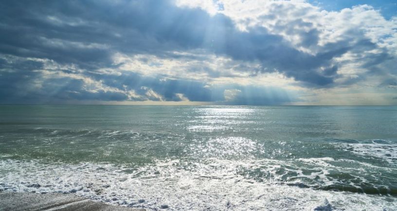 Ocean waves lapping on a lonely shore;