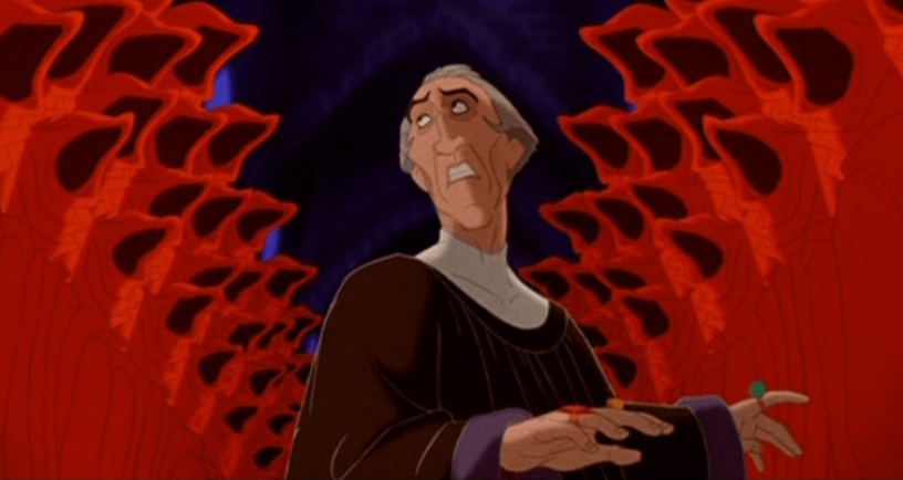 It was then when Claude Frollo realized what he had been running from; it wasn’t the soldiers, for the girl was dead and hence could not be hanged, but it was the whole city of Paris with its glaring eyes and judging frowns upon the treacherous sins he committed. A bitter laugh grumbled in his throat as he remembered calling the poor girl a fool for believing that a gypsy could be with a captain but, in fact, he – the archdeacon, a man of God – wished nothing more than to be with the Egyptian himself. The sorceress must have driven him mad – although the moment she had given in to him, he felt the happiest man in the world.