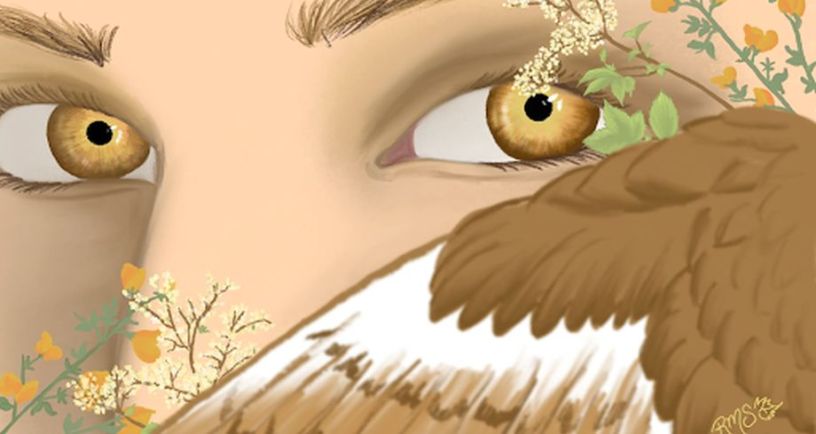 in feathers cloaked, in deep exile,