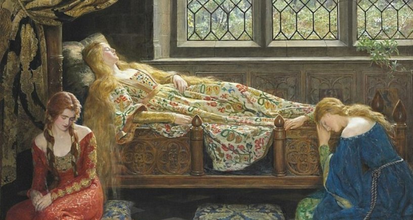 “S. Lewis thought that “Sleeping Beauty” was also about our redemption. Using different images, it seems to have a similar storyline: A girl is punished for her parents’ transgression; the punishment is not taken away but altered from death to sleep, and again a prince comes to wake her. Only one prince can free her, though many make the attempt. Thorns—like those that crowned Christ—grow up from the ground outside paradise, and thorns grow to obscure the tower where she sleeps.”