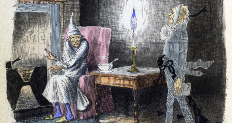 It’s a cant we’ve heard before. “It’s a dog eat dog world, but I picked myself up by my bootstraps. Why shouldn’t they? And if they can’t, well then then, it will but decrease the surplus population…” Truly a worldly mindset, but the separation of death has already definitively shaken off everything that was of the world from old Jacob Marley. And when the same happens to Ebenezer Scrooge? If he dies while ensnared by the trappings of the world, what then? The ponderous chain he forged for himself in life? Dickens invites us to ponder on this as he closes the First Stave. It is a heavy scene to close on, and demands one examine his or her own mortality. Dickens knew the necessity of this; that sometimes heavy blows are needed to break the hard hearts of old sinners like Scrooge, but fear is only the first step. Being afraid isn’t enough to save himself, as evidenced by Scrooge reverting to calling it a Humbug once Jacob Marley, the object of his fear has, flown away into the night. Fear is transient, and as long as it is the only catalyst for change, Scrooge’s contrition will always be imperfect. Jacob Marley is only the Sybil, and Scrooge must journey to hell and back to truly be cleansed.