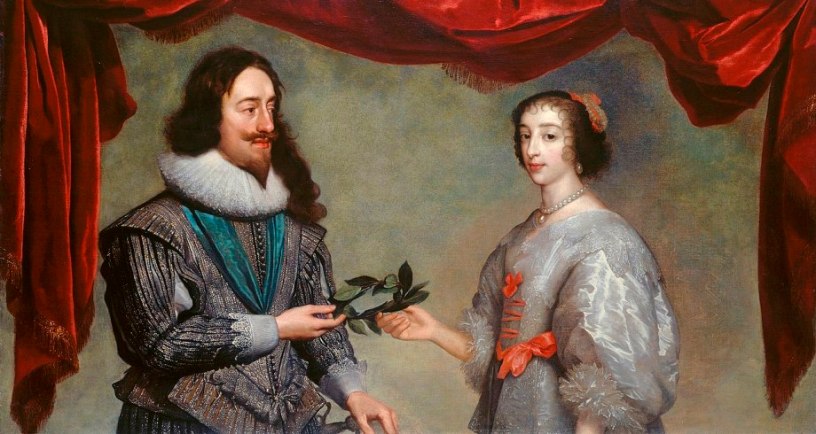 At fifteen years old “Henriette-Marie” was sent to marry Charles Stuart, who was a decade or so older. Queen Marie arranged the marriage because she believed there was a chance of bringing Charles I into Catholicism. Henriette-Marie was mandated by both the Pope and her brother the King of France to convert the English back to Catholicism. Meanwhile, the Catholic Faith had long been outlawed in the British Isles, so as Queen she became the principal lawbreaker. The powerful Duke of Buckingham tried to thwart her influence with her husband. England had become known as a place where queens could lose their heads. After the initial clashing of faiths, cultures and personalities, her marriage to Charles became one of the most devoted in the history of royal matches, and was blessed with nine children.